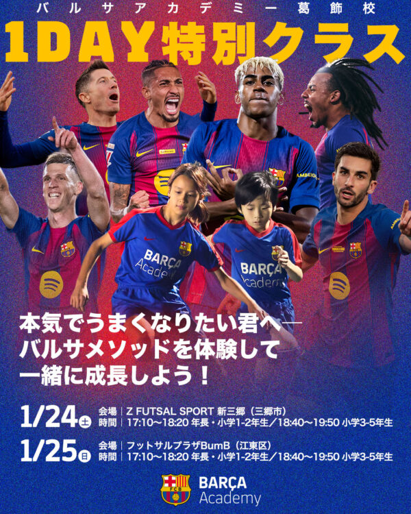 バルサアカデミー葛飾のスタッフによる1day特別クラスの開催決定!
